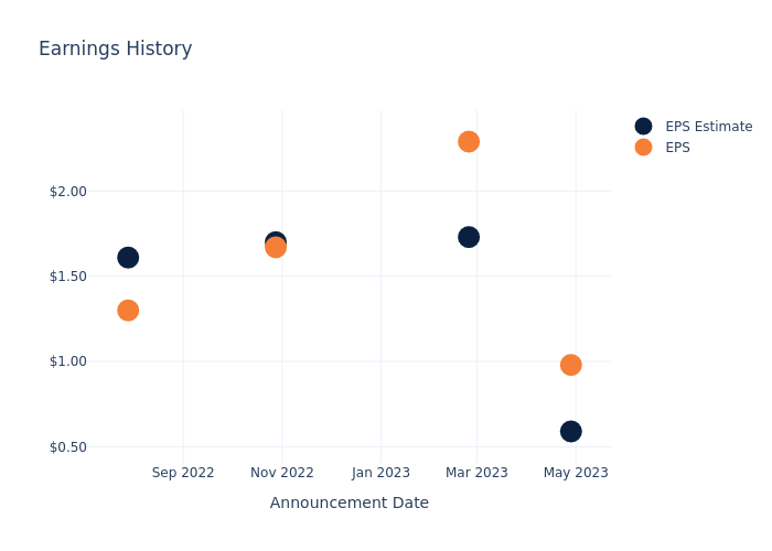 Last quarter the company beat EPS by $0.39, which was followed by a 0.0% drop in the share price the next day.