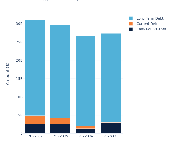 According to the Cheniere Energy’s most recent financial statement as reported on May 2, 2023, total debt is at $24.48 billion, with $24.41 billion in long-term debt and $61.00 million in current debt. Adjusting for $2.95 billion in cash-equivalents, the company has a net debt of $21.53 billion.