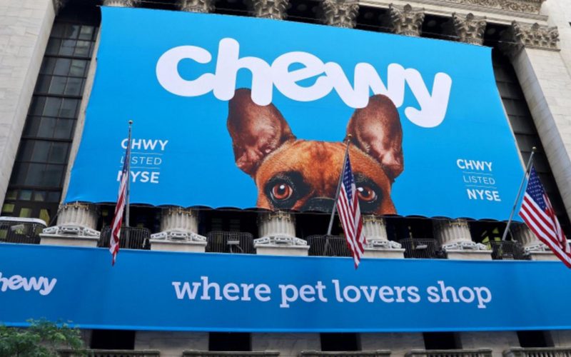 Shares of Chewy Inc (NYSE:CHWY) spiked in early trading on Thursday, after the company reported upbeat revenues and earnings for its first quarter.