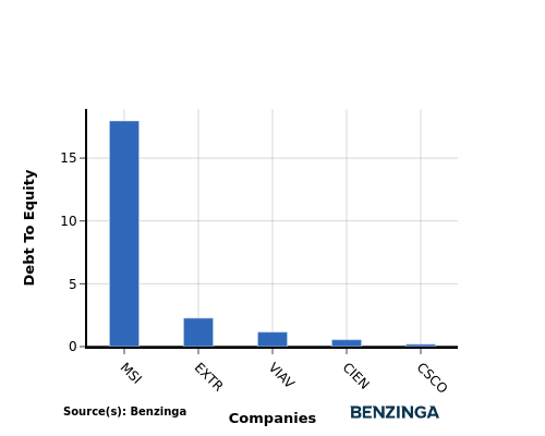 In terms of the Debt-to-Equity ratio, Cisco Systems can be assessed by comparing it to its top 4 peers, resulting in the following observations: