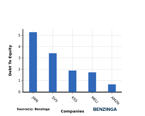 By evaluating Amazon.com against its top 4 peers in terms of the Debt-to-Equity ratio, the following observations arise: