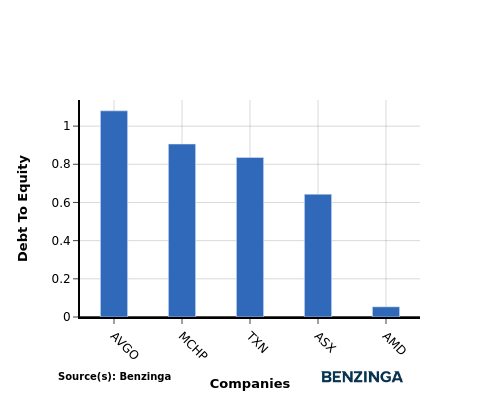 When comparing Advanced Micro Devices with its top 4 peers based on the Debt-to-Equity ratio, the following insights can be observed: