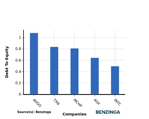 When evaluating Intel alongside its top 4 peers in terms of the Debt-to-Equity ratio, the following insights arise: