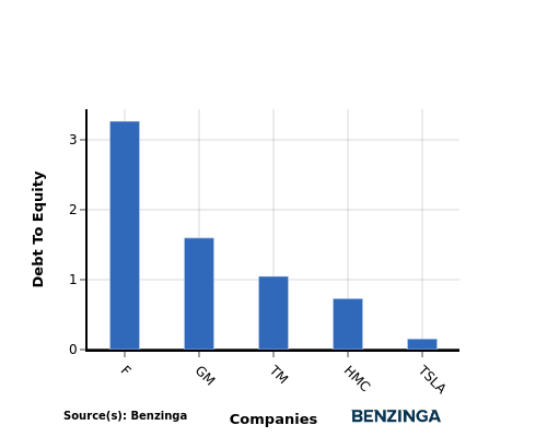 By evaluating Tesla against its top 4 peers in terms of the Debt-to-Equity ratio, the following observations arise: