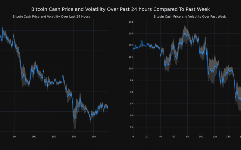 Over the past 24 hours, Bitcoin Cash’s (CRYPTO: BCH) price has fallen 3.41% to $96.34. This continues its negative trend over the past week where it has experienced a 5.0% loss, moving from $101.61 to its current price.