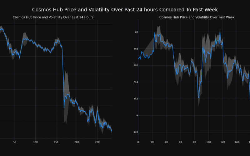 Cosmos Hub’s (CRYPTO: ATOM) price has decreased 5.75% over the past 24 hours to $8.96, continuing its downward trend over the past week of -7.0%, moving from $9.67 to its current price.