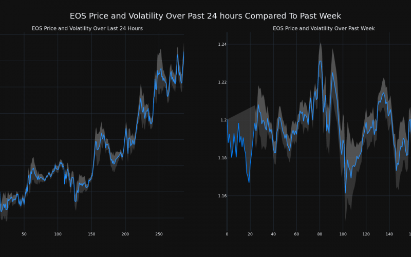 Over the past 24 hours, EOS’s (CRYPTO: EOS) price has risen 4.08% to $1.23. This continues its positive trend over the past week where it has experienced a 2.0% gain, moving from $1.2 to its current price. As it stands right now, the coin’s all-time high is $22.71.