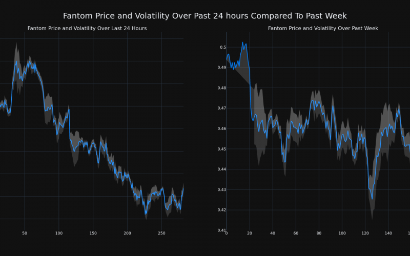 The chart below compares the price movement and volatility for Fantom over the past 24 hours (left) to its price movement over the past week (right). The gray bands are Bollinger Bands, measuring the volatility for both the daily and weekly price movements. The wider the bands are, or the larger the gray area is at any given moment, the larger the volatility.