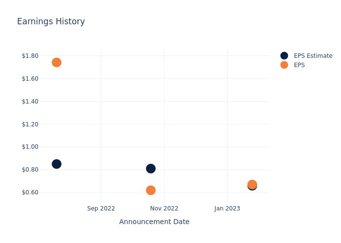 Last quarter the company beat EPS by $0.01, which was followed by a 3.97% increase in the share price the next day.