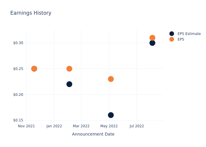 Last quarter the company beat EPS by $0.01, which was followed by a 1.38% drop in the share price the next day.