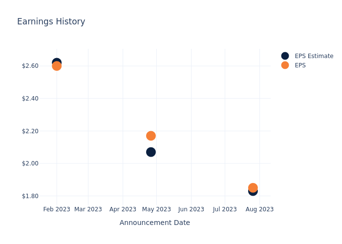 Last quarter the company beat EPS by $0.02, which was followed by a 2.76% drop in the share price the next day.