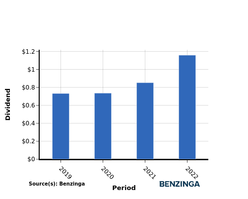 Investors witnessed an upward trajectory in the company’s dividend per share between 2019 and 2022. The dividend per share rose from $0.73 to $1.16, indicating the company’s dedication to enhancing shareholder value through increased dividends.