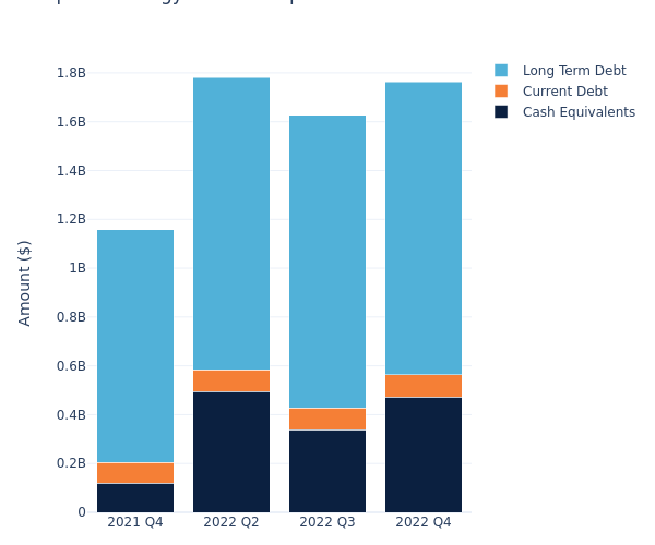 Based on Enphase Energy’s financial statement as of February 13, 2023, long-term debt is at $1.20 billion and current debt is at $90.89 million, amounting to $1.29 billion in total debt. Adjusted for $473.24 million in cash-equivalents, the company’s net debt is at $817.11 million.