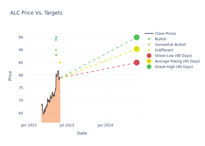 According to 11 analyst offering 12-month price targets in the last 3 months, Alcon has an average price target of $87.09 with a high of $95.00 and a low of $81.00.