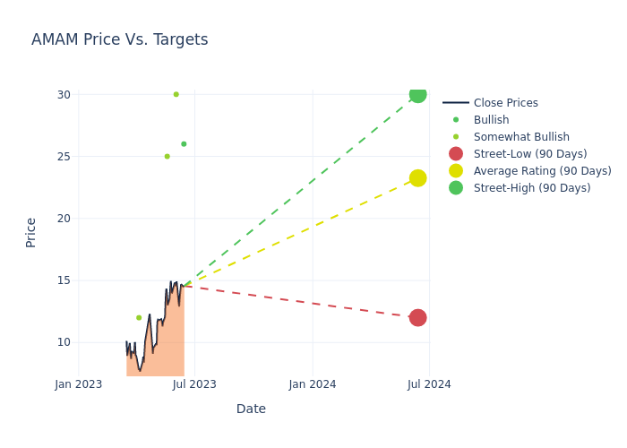 In the last 3 months, 4 analysts have offered 12-month price targets for Ambrx Biopharma. The company has an average price target of $23.25 with a high of $30.00 and a low of $12.00.