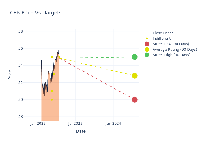 Within the last quarter, Campbell Soup (NYSE:CPB) has observed the following analyst ratings: