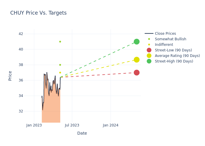 According to 7 analyst offering 12-month price targets in the last 3 months, Chuy’s Holdings has an average price target of $37.29 with a high of $41.00 and a low of $33.00.