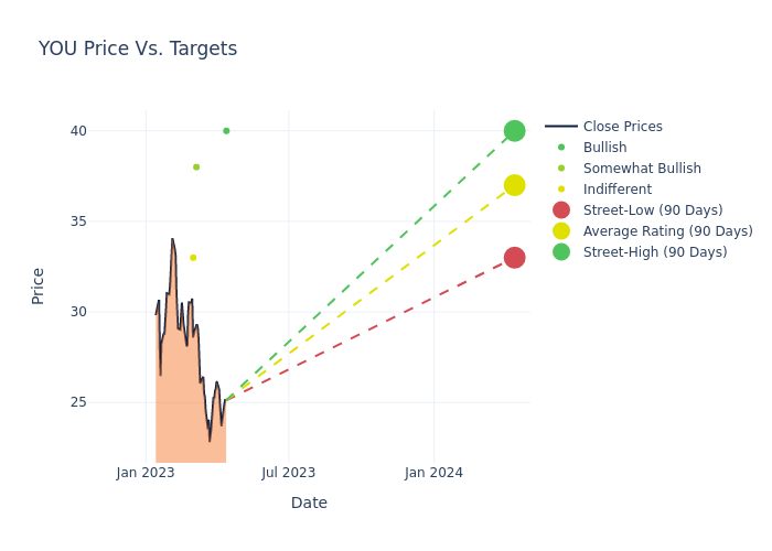 According to 8 analyst offering 12-month price targets in the last 3 months, Clear Secure has an average price target of $38.38 with a high of $40.00 and a low of $33.00.