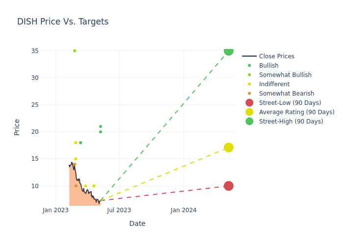 In the last 3 months, 11 analysts have offered 12-month price targets for DISH Network. The company has an average price target of $18.0 with a high of $35.00 and a low of $10.00.