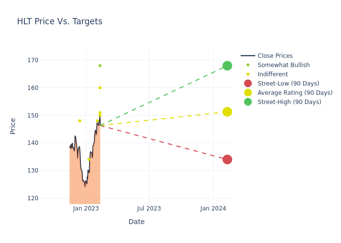 These 12 analysts have an average price target of $151.92 versus the current price of Hilton Worldwide Holdings at $146.32, implying upside.