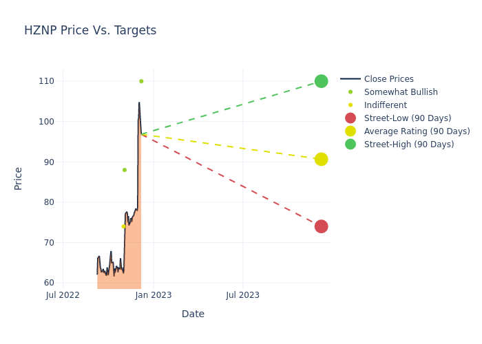 In the last 3 months, 4 analysts have offered 12-month price targets for Horizon Therapeutics. The company has an average price target of $90.0 with a high of $110.00 and a low of $74.00.