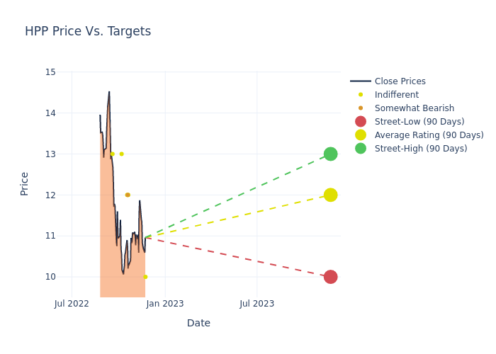 These 8 analysts have an average price target of $12.38 versus the current price of Hudson Pacific Properties at $10.95, implying upside.