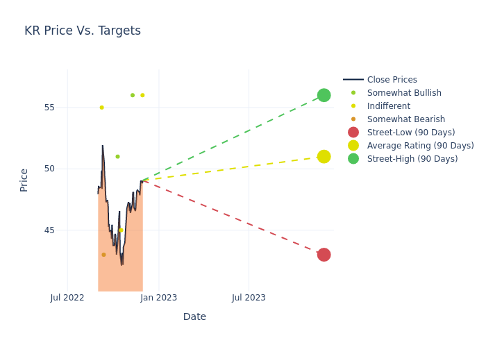 Analysts have provided the following ratings for Kroger (NYSE:KR) within the last quarter: Bullish Somewhat Bullish Indifferent Somewhat…