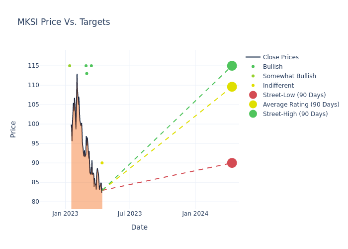 These 6 analysts have an average price target of $108.83 versus the current price of MKS Instruments at $82.945, implying upside.