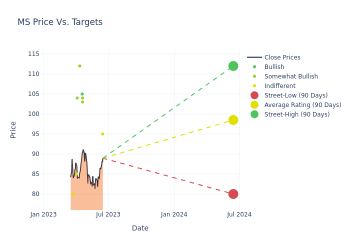 In the last 3 months, 10 analysts have offered 12-month price targets for Morgan Stanley. The company has an average price target of $97.8 with a high of $112.00 and a low of $80.00.