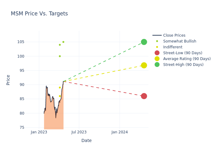 These 6 analysts have an average price target of $96.83 versus the current price of MSC Industrial Direct Co at $91.25, implying upside.