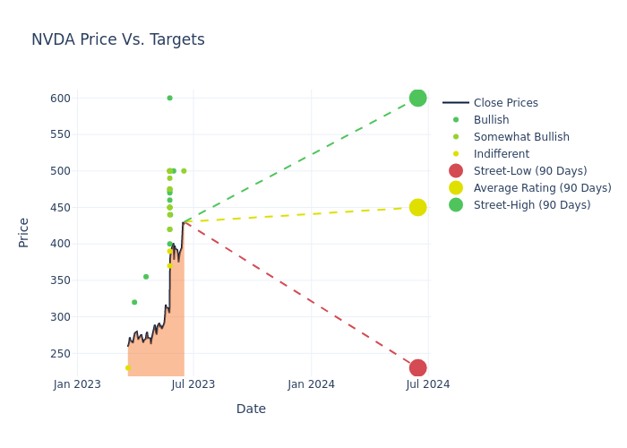 In the last 3 months, 49 analysts have offered 12-month price targets for NVIDIA. The company has an average price target of $410.76 with a high of $600.00 and a low of $290.00.