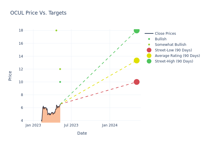 In the last 3 months, 7 analysts have offered 12-month price targets for Ocular Therapeutix. The company has an average price target of $12.14 with a high of $18.00 and a low of $10.00.