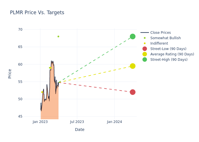According to 4 analyst offering 12-month price targets in the last 3 months, Palomar Hldgs has an average price target of $59.5 with a high of $68.00 and a low of $52.00.