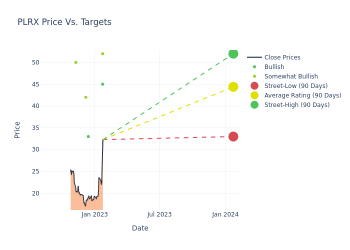 According to 5 analyst offering 12-month price targets in the last 3 months, Pliant Therapeutics has an average price target of $44.4 with a high of $52.00 and a low of $33.00.