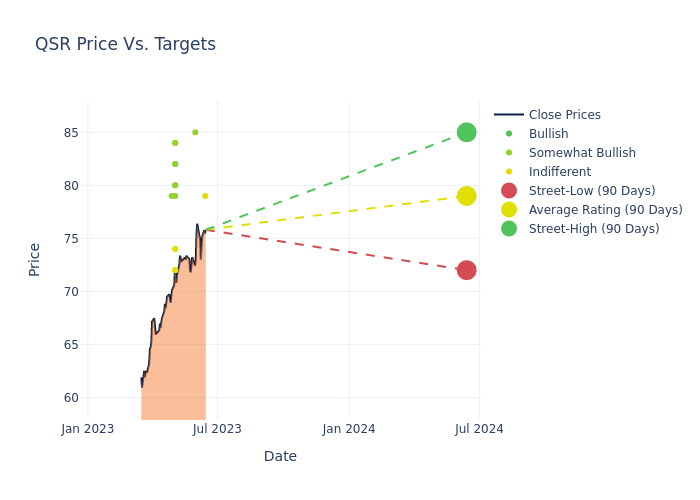 Restaurant Brands Intl (NYSE:QSR) has observed the following analyst ratings within the last quarter: