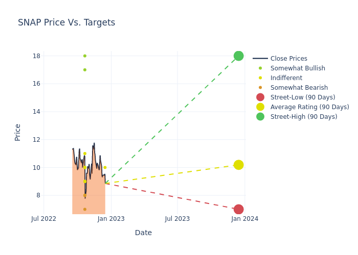 In the last 3 months, 22 analysts have offered 12-month price targets for Snap. The company has an average price target of $11.59 with a high of $22.00 and a low of $7.00.