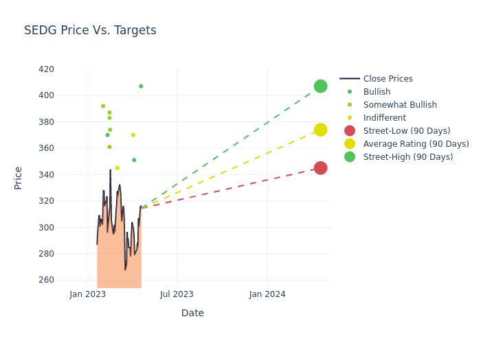 According to 10 analyst offering 12-month price targets in the last 3 months, SolarEdge Technologies has an average price target of $374.0 with a high of $407.00 and a low of $345.00.