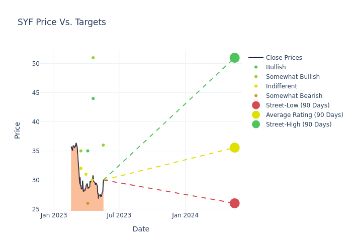 These 10 analysts have an average price target of $35.7 versus the current price of Synchrony Finl at $29.985, implying upside.