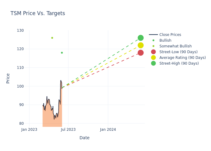 In the last 3 months, 5 analysts have offered 12-month price targets for Taiwan Semiconductor. The company has an average price target of $114.8 with a high of $126.00 and a low of $110.00.