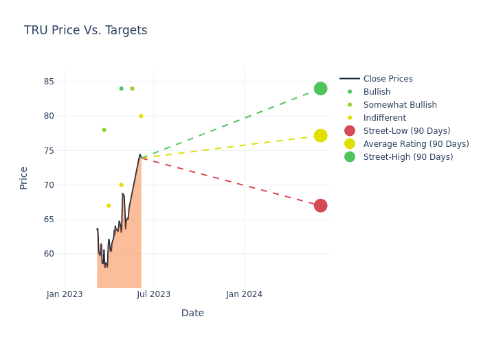 These 6 analysts have an average price target of $77.17 versus the current price of TransUnion at $73.9, implying upside.