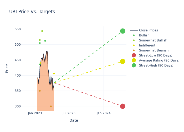 According to 11 analyst offering 12-month price targets in the last 3 months, United Rentals has an average price target of $442.55 with a high of $544.00 and a low of $300.00.