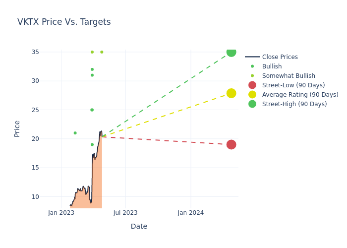 These 11 analysts have an average price target of $26.09 versus the current price of Viking Therapeutics at $20.34, implying upside.