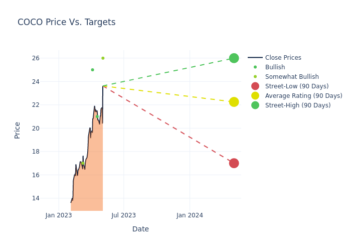 These 7 analysts have an average price target of $21.14 versus the current price of Vita Coco at $23.62, implying downside.