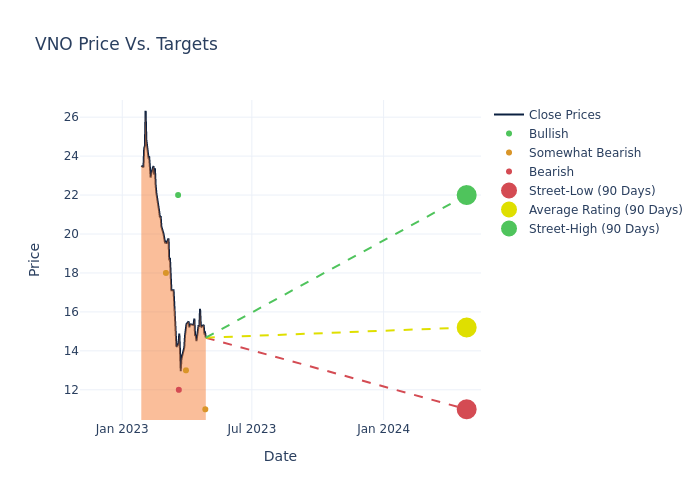 These 7 analysts have an average price target of $15.71 versus the current price of Vornado Realty at $14.715, implying upside.