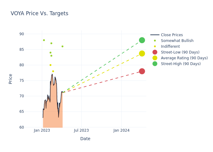 These 12 analysts have an average price target of $83.17 versus the current price of Voya Financial at $71.1, implying upside.