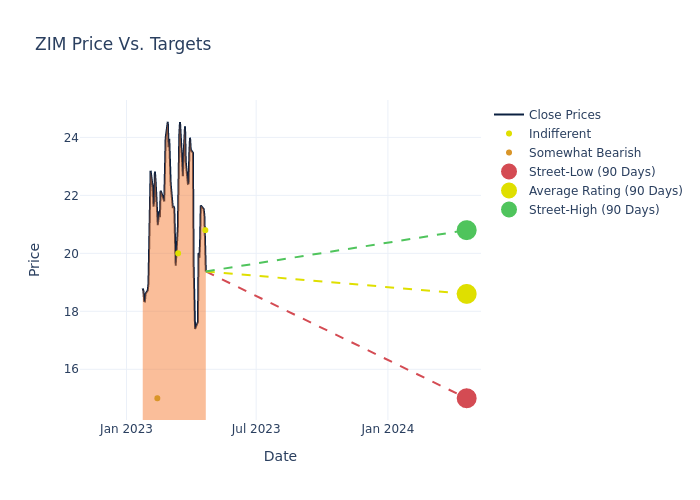 In the last 3 months, 6 analysts have offered 12-month price targets for ZIM Integrated Shipping. The company has an average price target of $21.03 with a high of $30.40 and a low of $15.00.