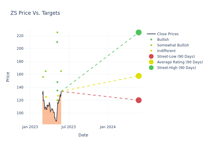 According to 16 analyst offering 12-month price targets in the last 3 months, Zscaler has an average price target of $168.69 with a high of $225.00 and a low of $120.00.