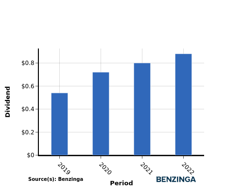 As you can see, from 2019 to 2022, investors saw an average increase in the company’s dividend per share, rising from $0.54 in 2019 to $0.88 in 2022. This is good for investors because it shows that the company has steadily returned more capital back to their shareholders and it could mean that they are planning to continue increasing dividends.