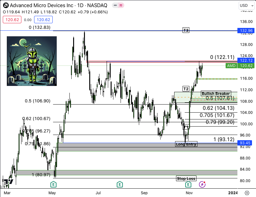 Advanced Micro Devices, Inc. (NASDAQ:AMD) Daily What did we say that first draw was last Sunday? 122.12? Where did we hit this week? 122.12? Model Completes at 132.98