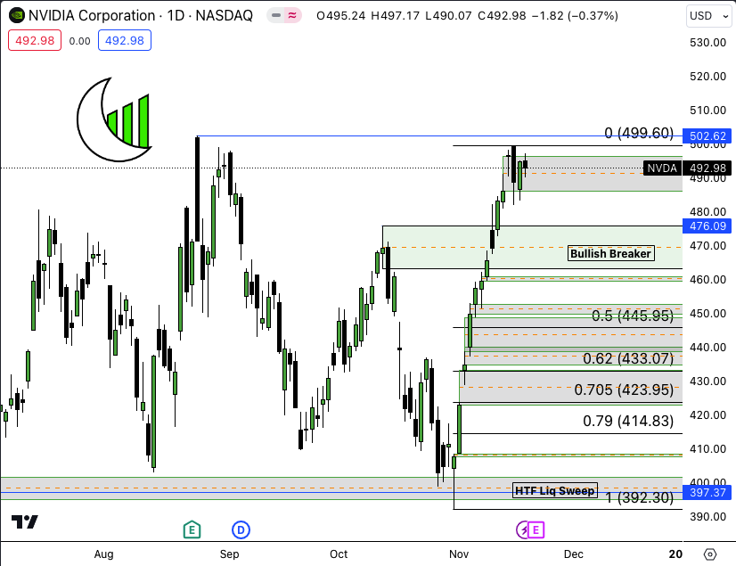 NVIDIA Corporation (NASDAQ:NVDA) Daily Earnings this week. Mando Model and sweep of ATH completes at 502.52 What kind of reaction do you think NVDA gets to earnings?